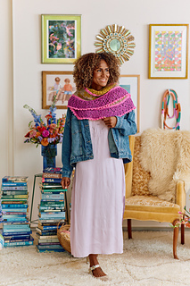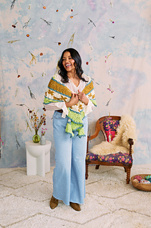Spend misty mornings wrapped in layers of color and texture with the Dew Drop Crescent Shawl. Pretty lace, bordered by contrasting garter stitch, separates panels of Fair Isle checks and flowers. A fun picot bind-off adds the finishing touch.