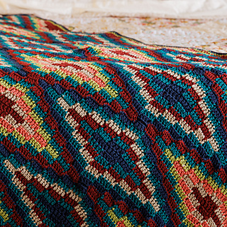 Shades of Bernat Fabwoolous take centre stage on this rhythmically-inspired crochet blanket.