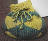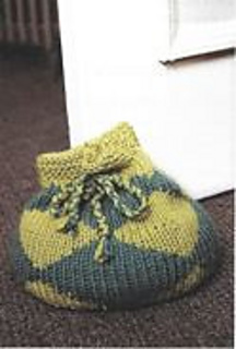 This is a pattern for a diamonds door stop, originally published in Knitting magazine. It has intarsia diamonds and a garter stitch border with eyelets and a tie to secure. It is filled with a lined inner and rice for weight. The base is a circle formed by simple increases. You will need 2 x 50gm balls main, 1 x ball contrast.