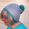 This appealing hat features easy knit and purl textured stitches and a pop of color at the edges. The hat can be made beanie style or slouchy, and it sports an optional pom-pom for fun. The hat is worked in the round with a cast-on that blends into the pattern on the body of the item.