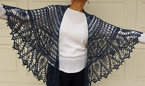 58 cm/23 inches down center back, 160 cm/63 inches wingspan. 57 rows.