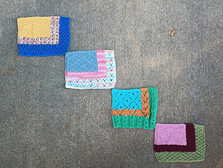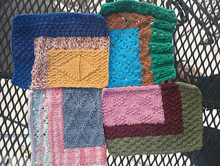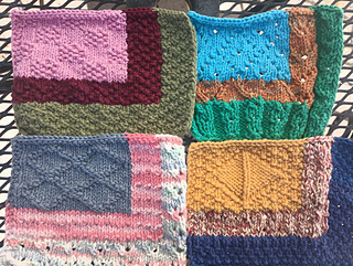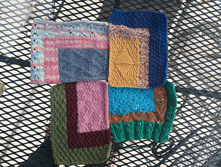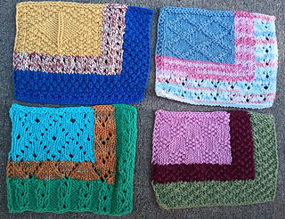 A great pattern for stash busting. Pattern can be worked in 1-3 colors, it is written for 3 colors worked in intarsia blocks. There are 4 charts that are a mix of lace and/ or textures, with a blank chart at the end you can make your own chart or mix and match from the existing charts.