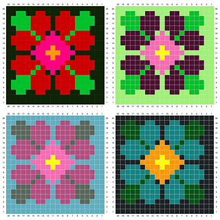 The idea behind this new pattern is uninterrupted, compacted lacy pattern repeat and a small enough central mosaic that isn’t too small to see and not too large to put people off working on it
