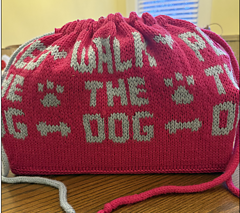 This is my ninth design in the Dumplin’ bag series. This bag coordinates with my Knitwords ebook and the Dogwords Cowl and Dogwords Hat