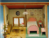 Most of dollhouse is constructed. Crochet pieces include curtain, lampshade, rug, mat and bedspread.