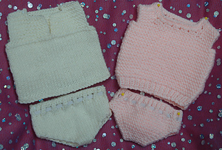 This is a knitting pattern for 2 sets of vest and pants sets for dolls.
