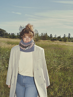 The Dorthea Cowl is worked from the bottom up. First, you knit the two identical ribbed edges, then join them together to continue working stranded knitting in the round according to the chart.