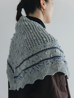 メッシュのような透かし模様とぷっくらしたボッブルが特徴的なショールは肩と背中をしっかりカバーしてくれるサイズ感です。