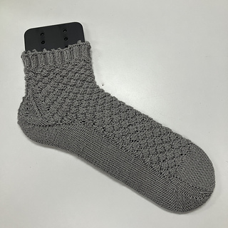 Sizes: S(M,L) – 60(66,72) stitches at leg. Designed for a size M to fit approximately 8.5 inch (22 cm) foot circumference. Texture pattern results in a sock that is slightly smaller than one knit on same size needles with same stitch count in plain stockinette. Calf size adjustment is only recommended through changing needle sizes due to texture stitch.