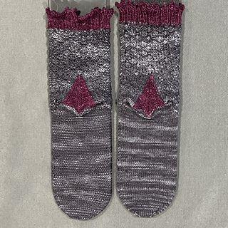 Dragon scale inspired socks with a wing ankle detail and princess sole.