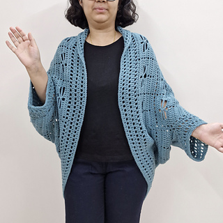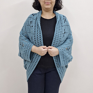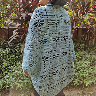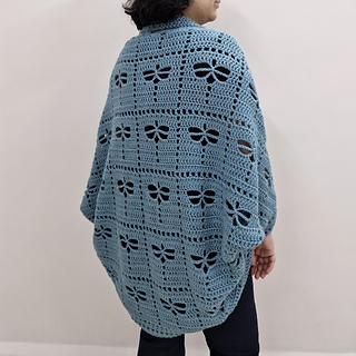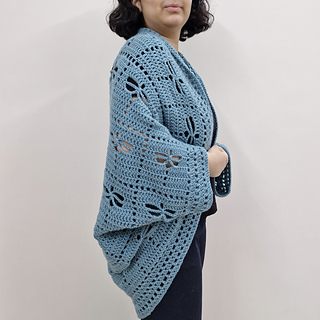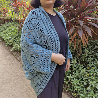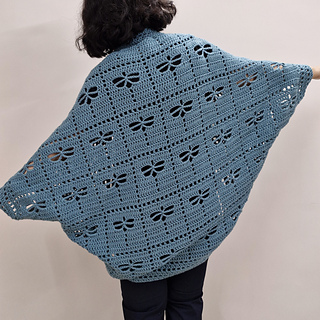 The Dragonfly Garden Shrug was inspired by the magical dragonfly stitch. This light and airy crochet cocoon cardigan is made from a simple rectangle that folds into a soft, elegant cocoon — fun to wear and easy and quick to make. Whether you call it a cocoon shrug, wrap cardigan, or lacy crochet cocoon sweater, this pattern gives you a beautiful, customizable layering piece for every season.