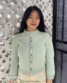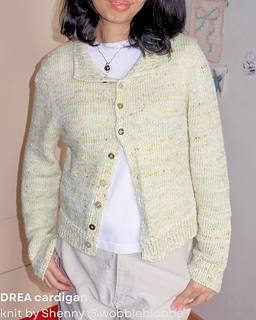 The Drea cardigan is worked top down with a contiguous yoke construction. The Back will be worked flat, with short rows shaping. On each side, the Shoulders are started by picking up stitches from the Back, with increases to shape the neckline. The yoke joins all panels, and sleeves are started by picking up stitches along the side of Shoulders. The rest of the yoke and body is worked flat. At the underarm, sleeve stitches will be placed on hold. Sleeves are worked in the round. Collar is worked by picking up stitches along the neckline.