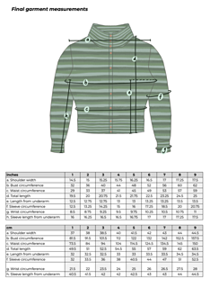 1-9, to fit 28-62” bust, with an additional made-to-measure option