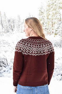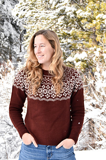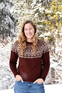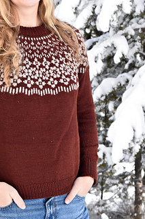 (5, 6, 6, 6) (7, 7, 8, 8) (9, 9, 10, 10) skeins Brown Sheep Company Prairie Spun DK in MC (Red Cedar), and (1, 1, 1, 1) (1, 1, 1, 1) (1, 2, 2, 2) skeins Brown Sheep Company Prairie Spun DK in CC (Parchment).