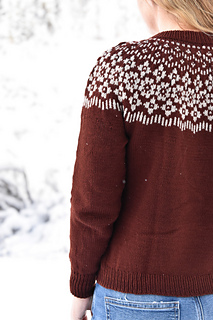 Short, sunless winter days are made more joyful by woolen flowers wrapped around your shoulders reminding you that spring will come again. Dreaming Of Spring is worked seamlessly from the top down in the round. DK weight yarn and a cozy folded neckline help keep the chill at bay. Short rows are worked under the colorwork for a good fit in the neckline.