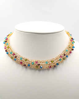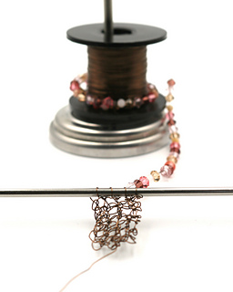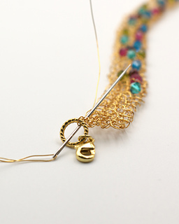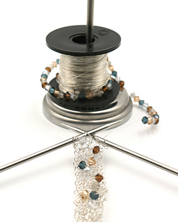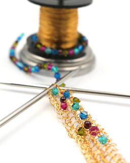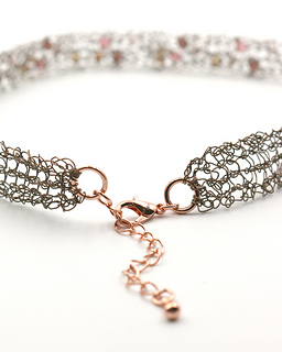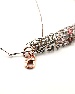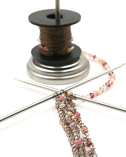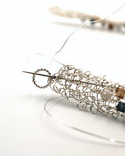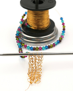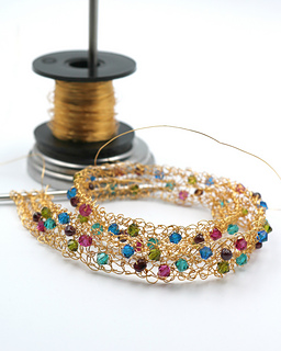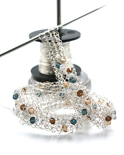 This elegant piece of jewellery consists of a straight piece of knitting. Working on just 4 stitches, this is the perfect starter project for those wishing to learn how to create knitted wire/metal jewellery. You would ideally know the basics of knitting with yarn, e.g. how to cast on, work plain knit stitches and how to cast off.