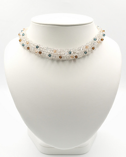 Drawing on the old rule of thumb for body measurements, ‘twice around the wrist equals once around the neck’, this versatile design allows you to wear the piece both as a bracelet and a choker/necklace.