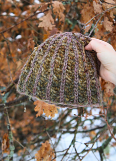 The “Echinoidea” hat is a textured beanie-style hat which is knitted bottom-up in the round. The hat is knitted in two-color brioche and it is available in three sizes.