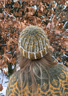You can decide to either use Varv or Nutiden as the main color for the crown. And depending on the length, the finished hat can either be worn as a single-layer hat or have a double-folded brim that shows the opposite texture of the fabric.