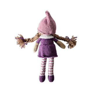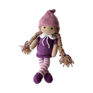Worked in stockinette and using increases and decreases for shaping, Elena also has long hair tied in plaits.