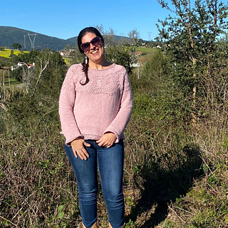 Esta camisola é tricotada de cima para baixo, em circular e sem costuras. Começamos por tricotar a gola e todo o encaixe com aumentos e o ponto rendado. Nas cavas as malhas das mangas são deixadas em espera enquanto tricota o corpo em circular. No final, retomamos as malhas das mangas e tricotamos em circular até ao punho. O ponto rendado está descrito em gráfico e em instruções escritas.