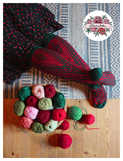 The 21-pages long PDF-knitting pattern includes good charts, written instructions and photos. The pattern includes two sizes for the leg. The socks are knitted as a mirror-image from each other, so the pattern includes charts for left and right leg.