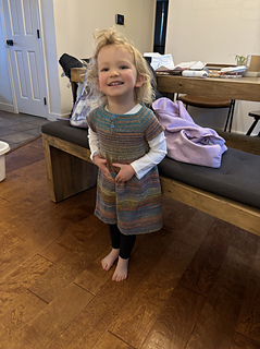 I have a bunch of Madelinetosh Merino light yarn mini skeins and I love stripe projects. So the Elyssa dress was born.