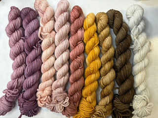 » Shown in: Fangirl Fibers Merino DK (100% Superwash Merino; 246 yds / 225 m per 100 g / Mini skeins: 49 yds / 45 m per 20 g)