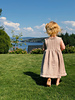 Inspired by the Engelina tie dress, we have created a similar dress for older children. The dress features a wide skirt that tapers into a more fitted bodice. It has broad shoulder straps.