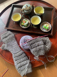 Yarns used for the sample size b - fingering weight yarn and mohair :