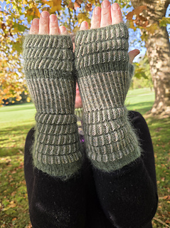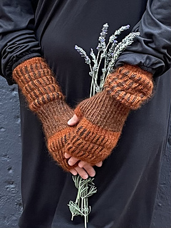 Les mitaines ÉPIS, douillettes et chaudes, sont tricotées en mérinos et mohair à partir des poignets. Elles peuvent être portées de différentes manières : étendues, plissées aux poignets et/ou repliées sur les doigts.
