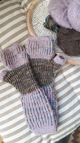 The cozy and warm EPIS mitts are knitted from the wrists up with merino and mohair. They can be worn in different ways : extended, pleated at the wrists and/or folded over the fingers.