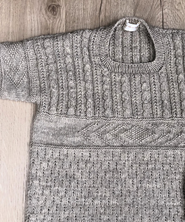 Taking design cues from traditional ganseys, this sweater design by Pat Menchini has a subtly textured lower body, with a central band of diamond and chevron motifs - this also appears around the upper sleeves, which are worked top-down. The yoke section is knitted in a pattern of mock cables and textured ribbing. By Laxtons Sheepsoft Aran is a British wool spun in Yorkshire, which comes in five natural shades.