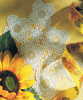 Doily is made from 2 x 3 arrangement of 4-scallop motifs, plus 2 fill-in motifs.