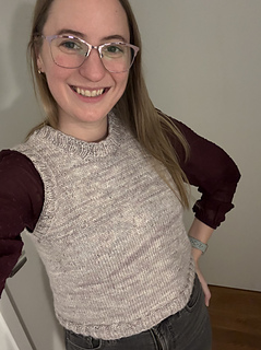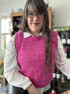 The Ever After Vest is a cute, oversized vest in the same style as the Ever After Sweater. It has a crew style neckline with a picked up collar, and is worked top down (flat for the armhole shaping, then in the round for the remainder of the body) with a sloped shoulder construction. The collar, cuffs and bottom edge have a 2 x 2 ribbed hem. The vest is worked to an upper bust measurement during the armhole shaping section, and then some additional increases are worked during the beginning of the body section to reach full bust measurements. The vest is designed to fall to a slightly cropped level. The pattern is intended to be a boxy fit, but has options for waist shaping if desired, as well as adding extra length as needed for the body. This is a size inclusive design, written for 11 sizes (30-70 inch / 75-175 cm finished bust, in 4 inch / 10 cm increments) and designed for 2-6 inches / 5-15 cm of positive ease.