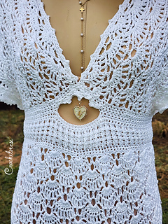This dress is comprised of a repeating lace pattern. Counts and rows are specific line by line for all sizes. It uses a standard size crochet garment clothing method in color coding so you can easily spot which number applies to your dress. It is rated advanced intermediate and you should have some experience making clothing before trying this pattern.