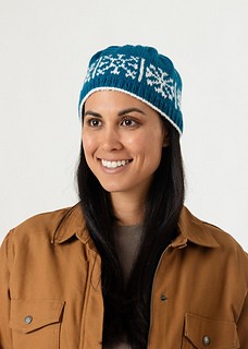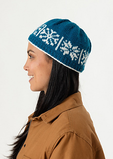 This worsted weight beanie makes a perfect first colorwork project! Knit all seven different snowflake motifs or mix and match your favorites for a hat that’s truly unique.