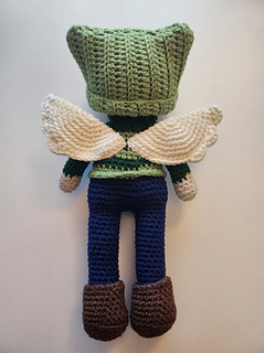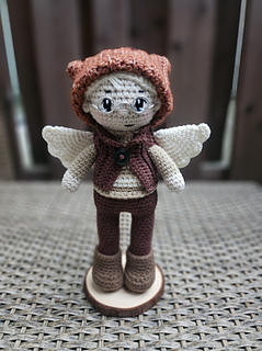 This pattern consists of 8 pages of detailed description in pdf format. There are a lot of photos to help you with the various parts of the doll. The pattern also includes instructions for a removable scarf, shoes and vest.
