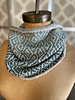The cowl shown here used the solid gray as the background color A and the teal gradient as the pattern color B, starting with the dark end. You can switch the colors for a slightly different look.