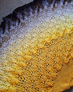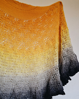 This half-pi shawl is designed to work best with a long change colour gradient.