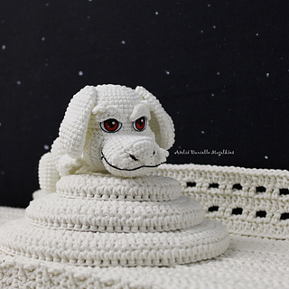 This Luck Dragon was designed to bring that feeling back to life in yarn form. With delicate shaping, expressive features, and a flowing body silhouette, this piece captures the dreamy essence of a nostalgic fantasy creature many of us grew up loving.