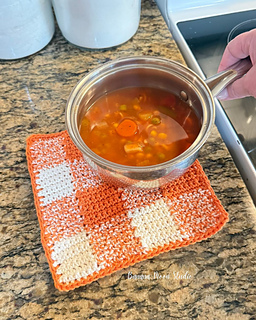 You will find the free, ad-supported version of the hot pad pattern here: https://bananamoonstudio.com/crochet-checkered-pot-holder...