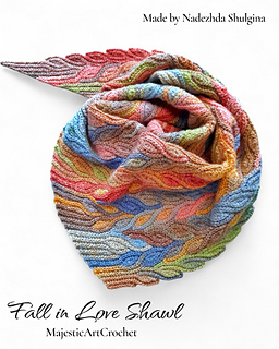 The Fall in Love Shawl can be worn alone or with the Ivy Crochet Hat or Beret. The Harmony Crochet Mittens complete the ensemble.