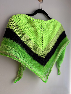 The triangle starts out with a Garter tab cast on on the top and keeps increasing in the middle and along the sides as well. Since it’s knitted with one skein, there are only two ends to weave in.