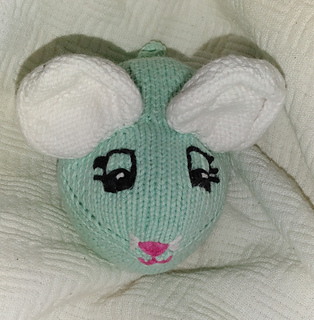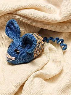 Storleken beror på garn, stickfasthet och stoppning. Med 8/4 bomullsgarn och stickor 2,0 mm blir den lilla musen ca 10 cm lång och den större ca 12 cm. Stickfastheten är inte avgörande, men tyget bör vara tillräckligt tätt för att stoppningen inte ska synas.