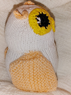 Storleken beror på garn, stickfasthet och stoppning. Med 8/4 bomullsgarn och stickor 2,0 mm blir den lilla ugglan ca 10 cm hög och den större ca 13 cm. Stickfastheten är inte avgörande, men tyget bör vara tillräckligt tätt för att stoppningen inte ska synas.