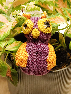 Familjen Uggla består av två små figurer som kombinerar stickning och virkning. Kroppen stickas runt i ett stycke, medan ögon och näbb virkas separat och sys fast innan kroppen försluts. Vingarna stickas fram och tillbaka och monteras på sidorna, och de karakteristiska tofsarna virkas direkt på huvudet.