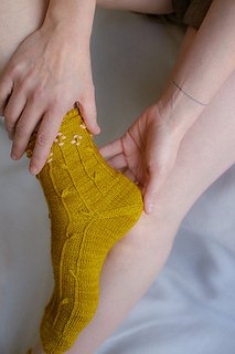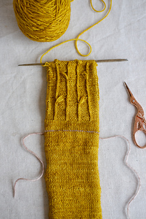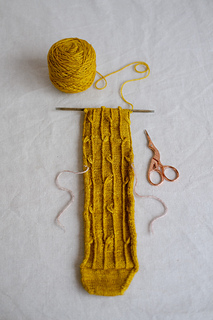 Yarn: Malabrigo sock (100 gr – 402 m), shown in colors: “frank ochre” and “jasmine”