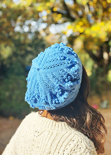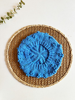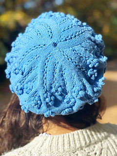 The beret is worked from the top center down to the lower ribbing, allowing you to try it on as you go if you wish to adjust the fit or if your gauge differs slightly from the pattern. It is worked entirely in the round, always on the right side.