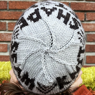 Brim and crown patterns are written, colorwork body is charted (one large chart for each of the four sizes); notes are included for choosing your size, gauge swatching, stranded colorwork. Hat is knit in the round from bottom to top.